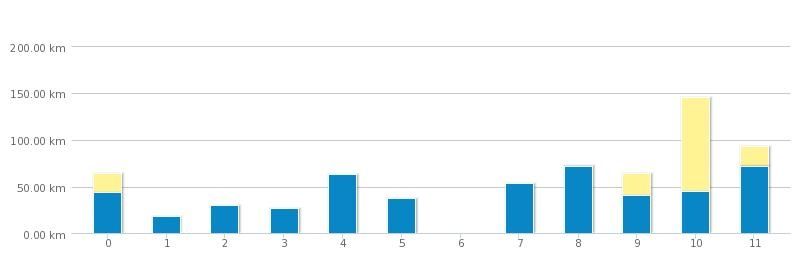 en bleu la course à pied, en jaune l’elliptique et je ne sais pourquoi janvier est le mois 0 !!!!!